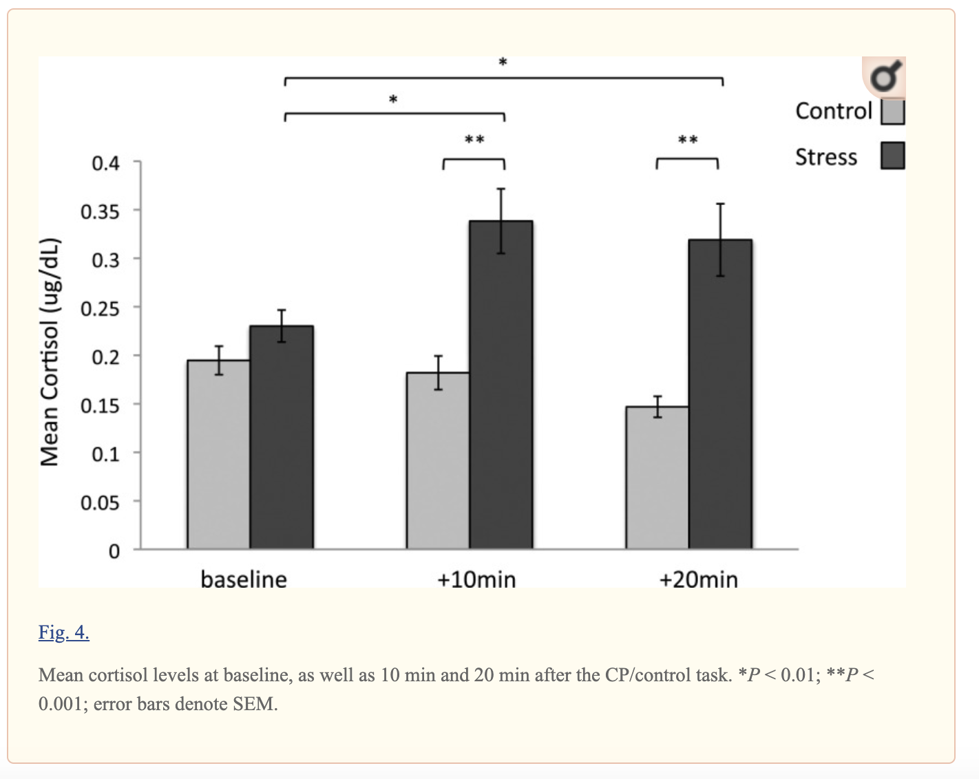 Then the next day, the researchers showed their subjects a frightening image that had elicited a strong stress response the day before and told them to use their newly-learned cognitive techniques to shut off that fear response. Some study participants stuck their arms in room-temperature water before seeing the scary image and others submerged their arms in an ice bath for long enough to mimic the stress of daily life.