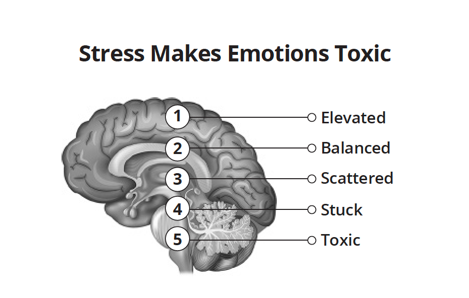 She was accustomed to helping clients identify their feelings. That helps ease stress, but only at Brain States 1 and 2. At 3, 4, and 5, doing that only increases our stress, even causing us to spiral down into even worse stress overload.